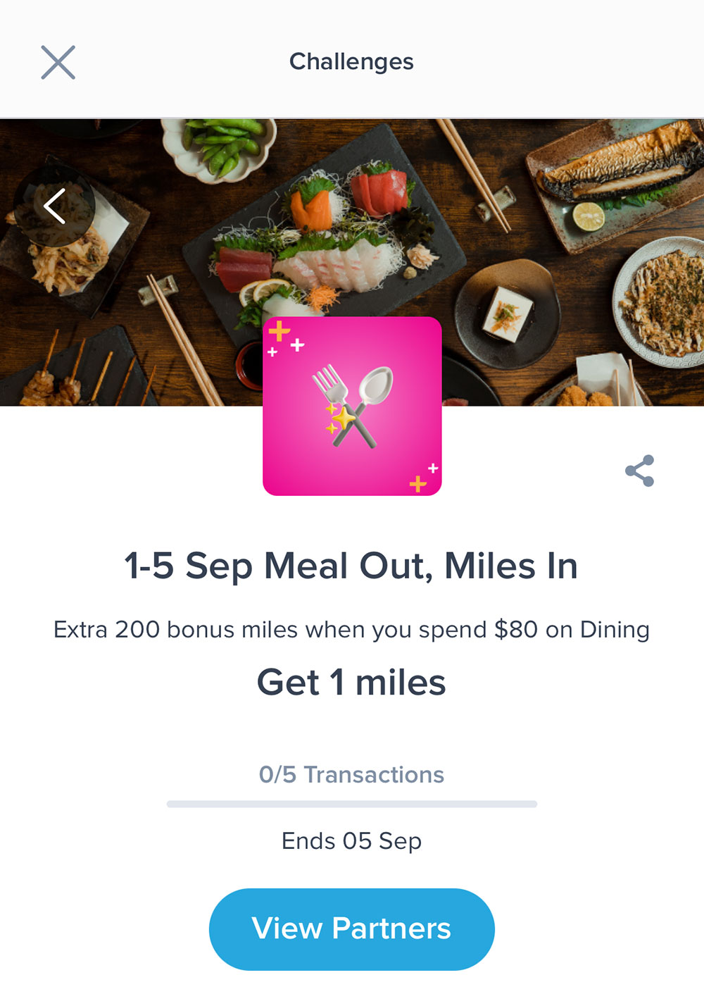 - Limited to first transaction per partner per day: You can only earn bonus miles once per participating partner each day, but there’s no requirement to use different dining partners each day