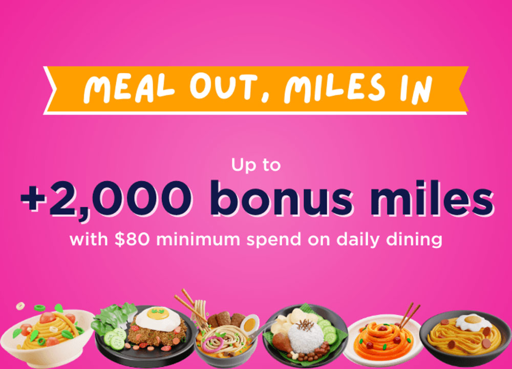 - Bonus miles: 200 miles per qualifying transaction of S$80+ (up to 2.5 mpd)