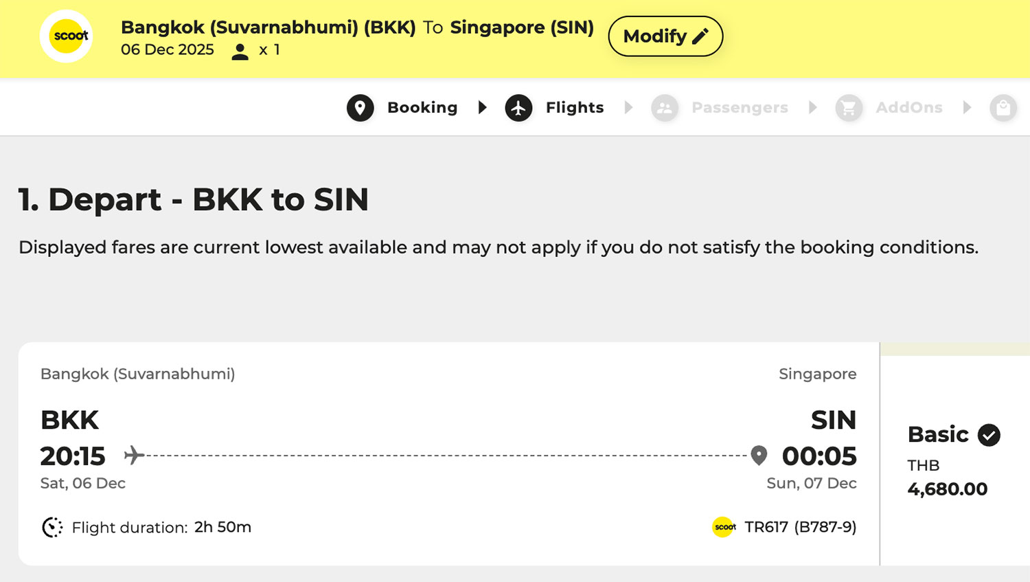 For my 6th December Bangkok to Singapore flight, the numbers looked compelling at first glance: