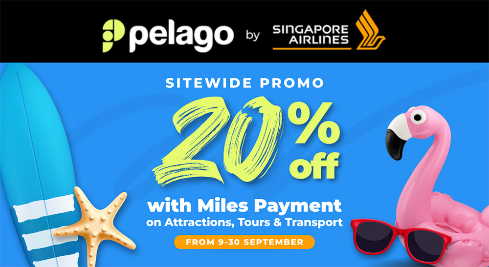 Pelago has launched a new bonus offer, with a 20% redemption discount, meaning only 80 KrisFlyer miles will get you S$1 off an experience booking (1.25 cents per mile value), between now and 30th September 2025.