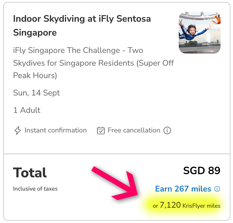 For example, if you have 7,400 expiring KrisFlyer miles you could redeem this indoor skydiving experience in Singapore at iFly Sentosa.