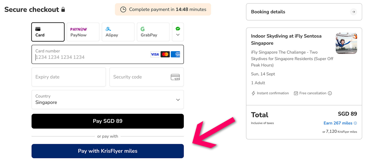 These are credited instantly upon payment, then immediately transferable into your KrisFlyer account at a 1:1 ratio.