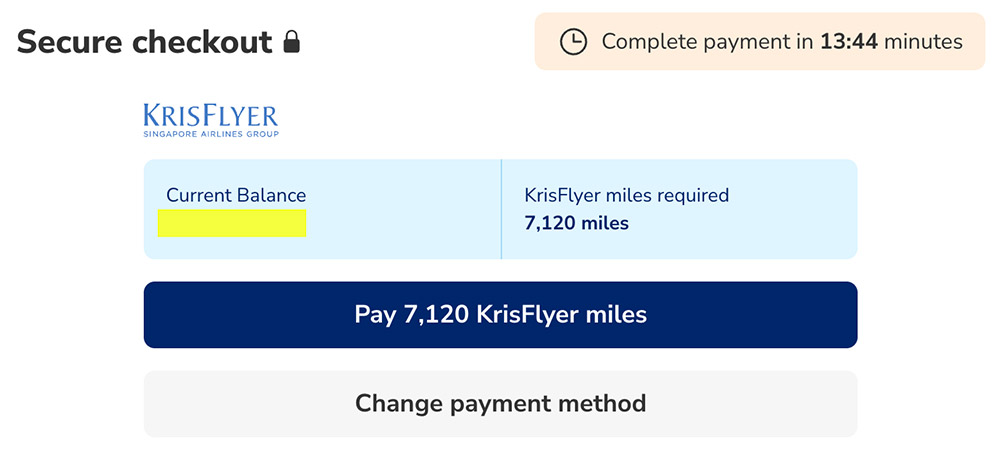 As you can see the usual cost of S$89 is waived if you use 7,120 KrisFlyer miles instead (1.25 cents per mile). Only 280 of your non-expiring miles will be “wasted” with this redemption, which probably isn’t a dealbreaker.