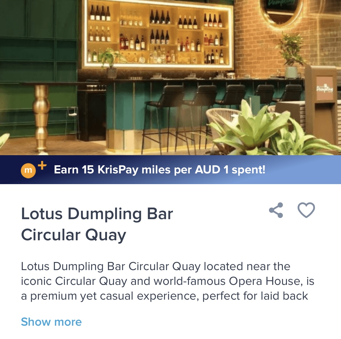 Kris+ is really pushing its earning programme in Australia, with over 220 merchants now on board, and this offer to net an instant uncapped 15 mpd at all of them is a great opportunity if you’re based in Sydney or Melbourne, or are simply visiting this month.