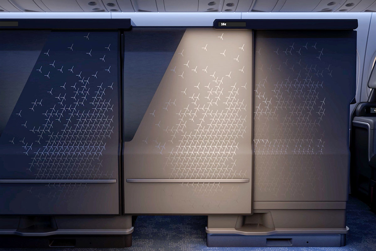 - Alternating window-aligned and aisle-aligned seats at each row, in common with the airline’s 2018 Regional Business Class layout, allowing the opportunity for ‘honeymoon’ options at alternate rows in the middle section – potentially meaning double beds for couples.