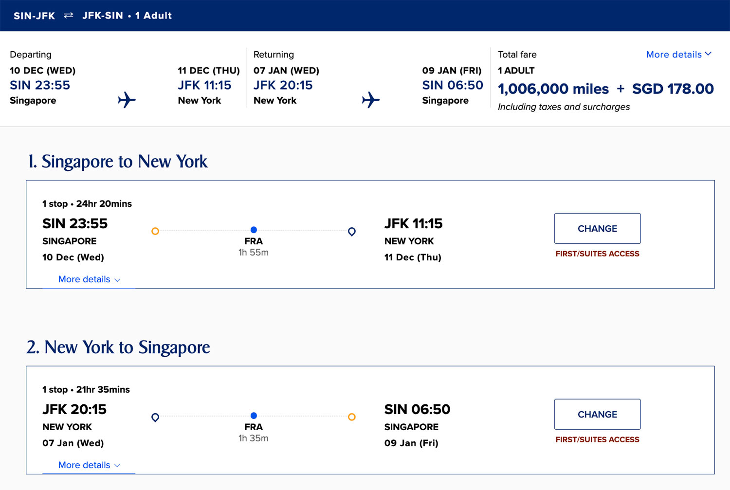 - Only Access? If Saver / Advantage inventory is zero, you’ll only see Access – which can look alarming on popular routes (e.g., 467,000 miles one-way in Suites SIN–LHR). Reality: Those flights simply had zero award seats before today. Access didn’t really hike anything, it created a redemption option where none previously existed.