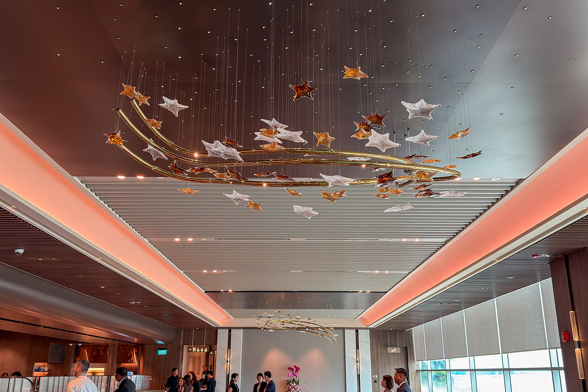 The lounge staff shared with us that the installations look particularly impressive at night, when the lights form a striking colourful reflective pattern on the ceiling, so we look forward to returning to witness that on a future visit.