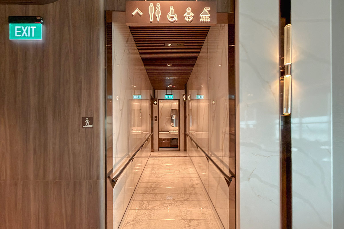 The restrooms are very nicely appointed, similar in style to those in the Terminal 3 First Class lounge, including TOTO bidet toilets.