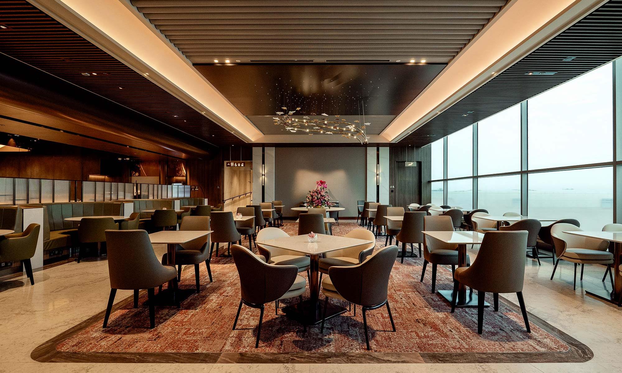 As you’d expect, a large section of the 130-seat First Class lounge is dedicated to dining tables,60 seats in total, with various seating configurations from intimate two-tops to larger booths that can accommodate groups of up to four guests.