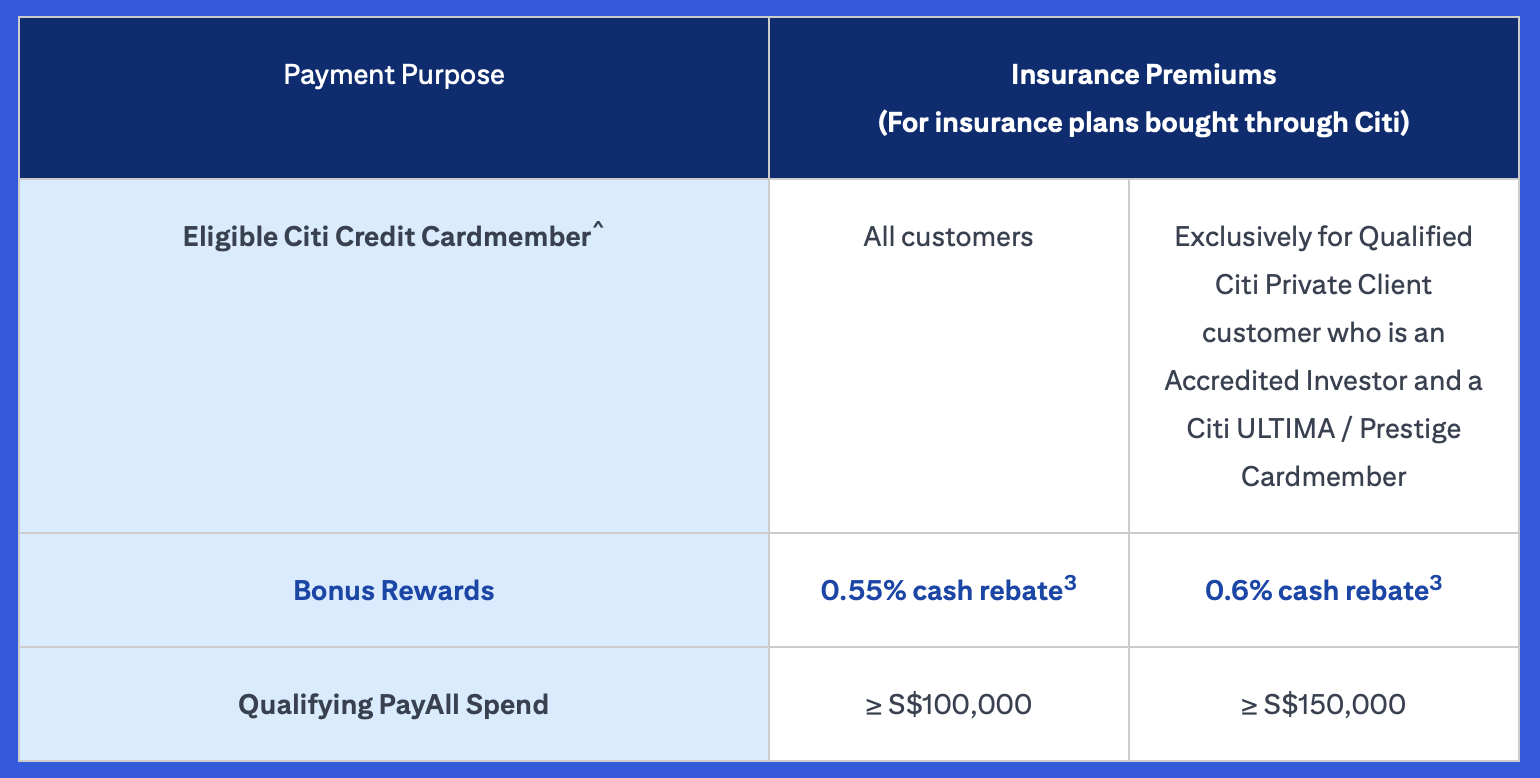 Citi is also offering higher bonus rebates of 0.55% or 0.6% on payments as part of this PayAll deal for its own insurance plans.