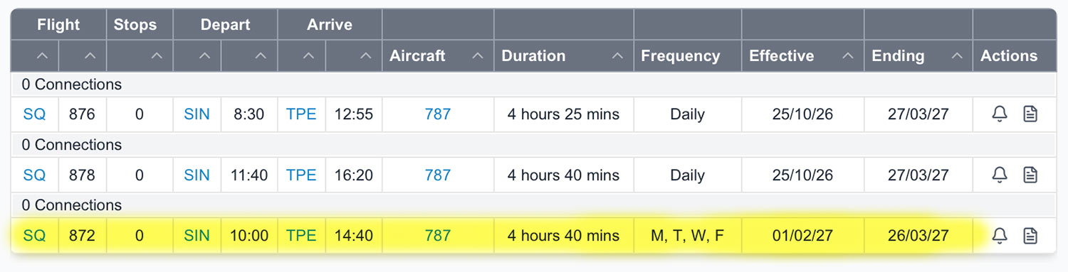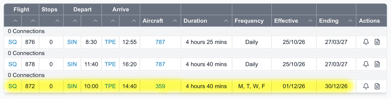 As always, forward-looking schedules, especially for NW26/27, remain provisional and could still change based on demand patterns and operational considerations, so this element of the capacity expansion on SIA’s Taipei services remains unconfirmed at this stage.