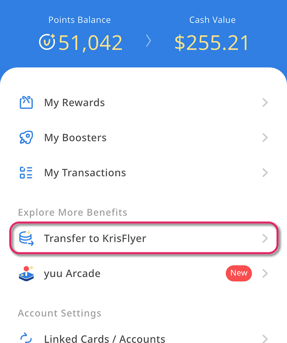 You’ll need to convert a minimum of 200 yuu Points to KrisFlyer miles per transfer, thereafter transfers can be made in single-point increments.