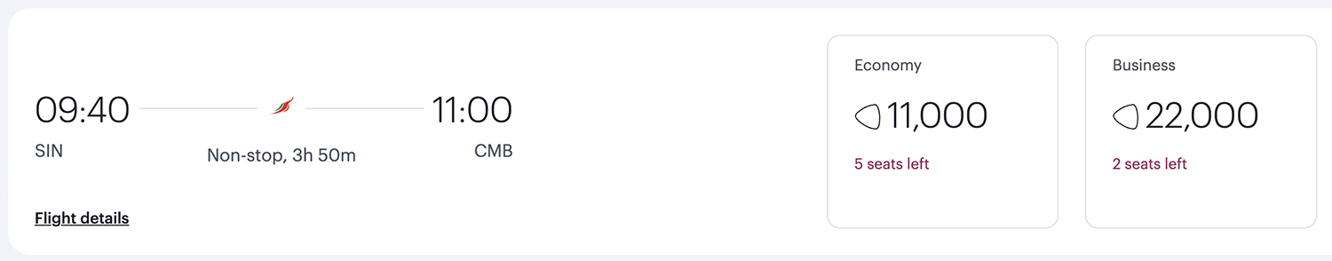Flights between Singapore and Colombo on SriLankan Airlines fall into the Avios Zone 3 partner award rate, which has always been quite attractive and still remains so, despite increases of 11-14%.