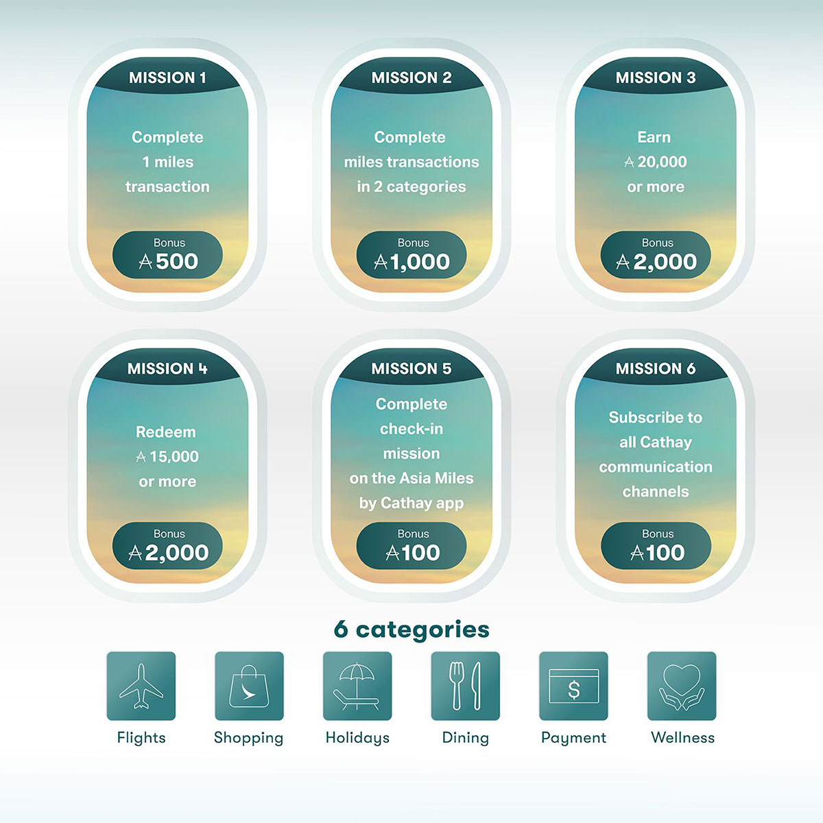 Mission 2 asks you to transact across two or more of Cathay’s six partner categories:
