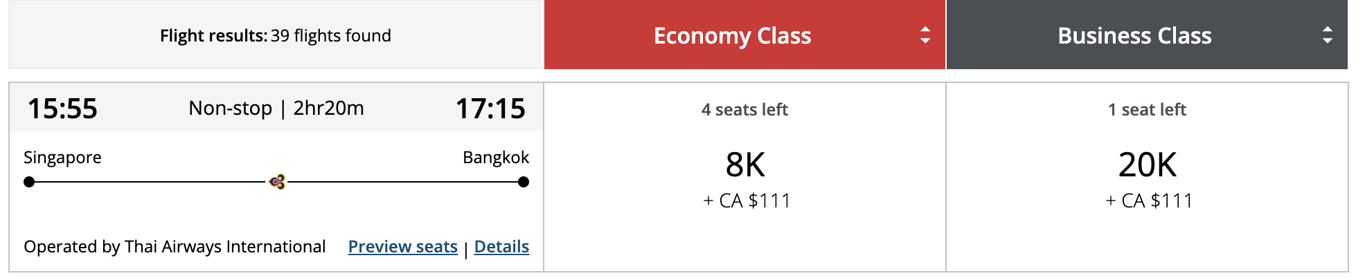Do note that Thai Airways passes on its fuel surcharge, which makes the cash component on top of your miles outlay quite steep compared to an SIA redemption.