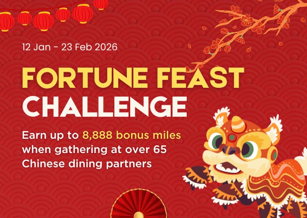 At least 488 bonus miles are relatively easily available for a cumulative spend of S$250 or more across the promotion period, with the maximum bonus of 8,888 miles if you notch up a whopping S$5,000 or more spend on festive gatherings.