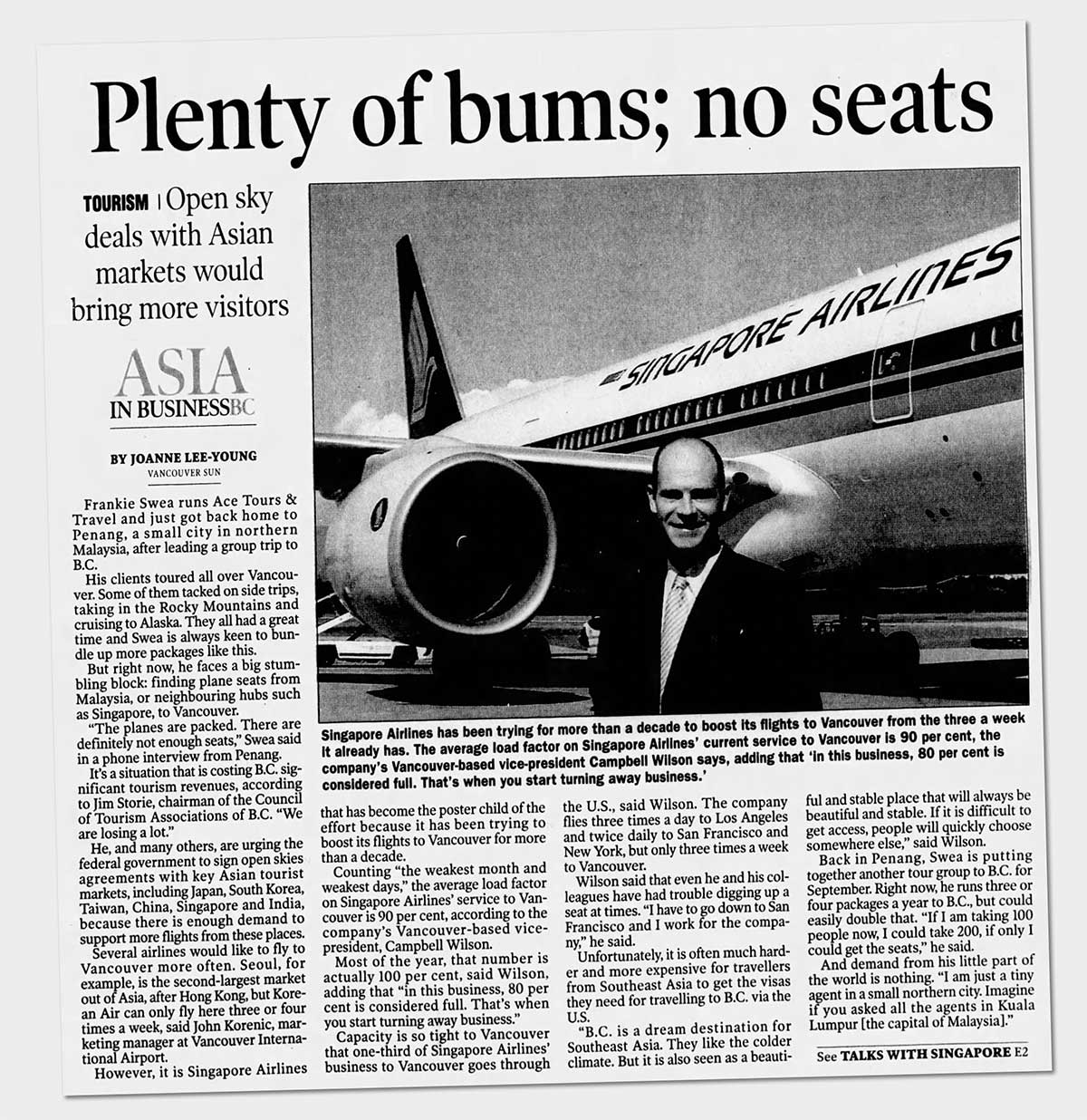 The frustration was palpable. Tourism BC was losing business. Travel agents in Southeast Asia were turning away customers. And SIA was constrained to just three SQ18/17 flights a week on a route that could clearly support more.
