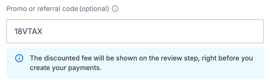 Note that the regular 2.6% fee shows initially, but once you proceed to the payment stage the discount will be reflected.