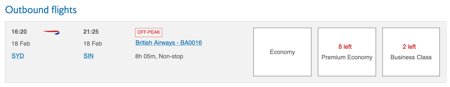 Surprisingly, I saw that British Airways had Club Suite Business Class availability for two passengers right at the end of the CNY period on its daily Sydney to Singapore “fifth freedom” flight (the plane continues to London, but passengers don’t have to).