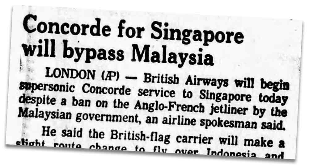 Several newspapers in London were having none of it, stating that the “extremely puzzling” stance was “likely [because] Malaysia is piqued at the operation by Singapore [Airlines] of Concorde service”.